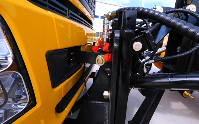 掛板式和駛?cè)胧絻煞N掛裝形式。掛板式結(jié)構(gòu)簡(jiǎn)單、拆換方便、結(jié)構(gòu)穩(wěn)定??蓪?shí)現(xiàn)單人3min快速換裝雪刷/雪鏟,大大節(jié)省時(shí)間和人力成本。