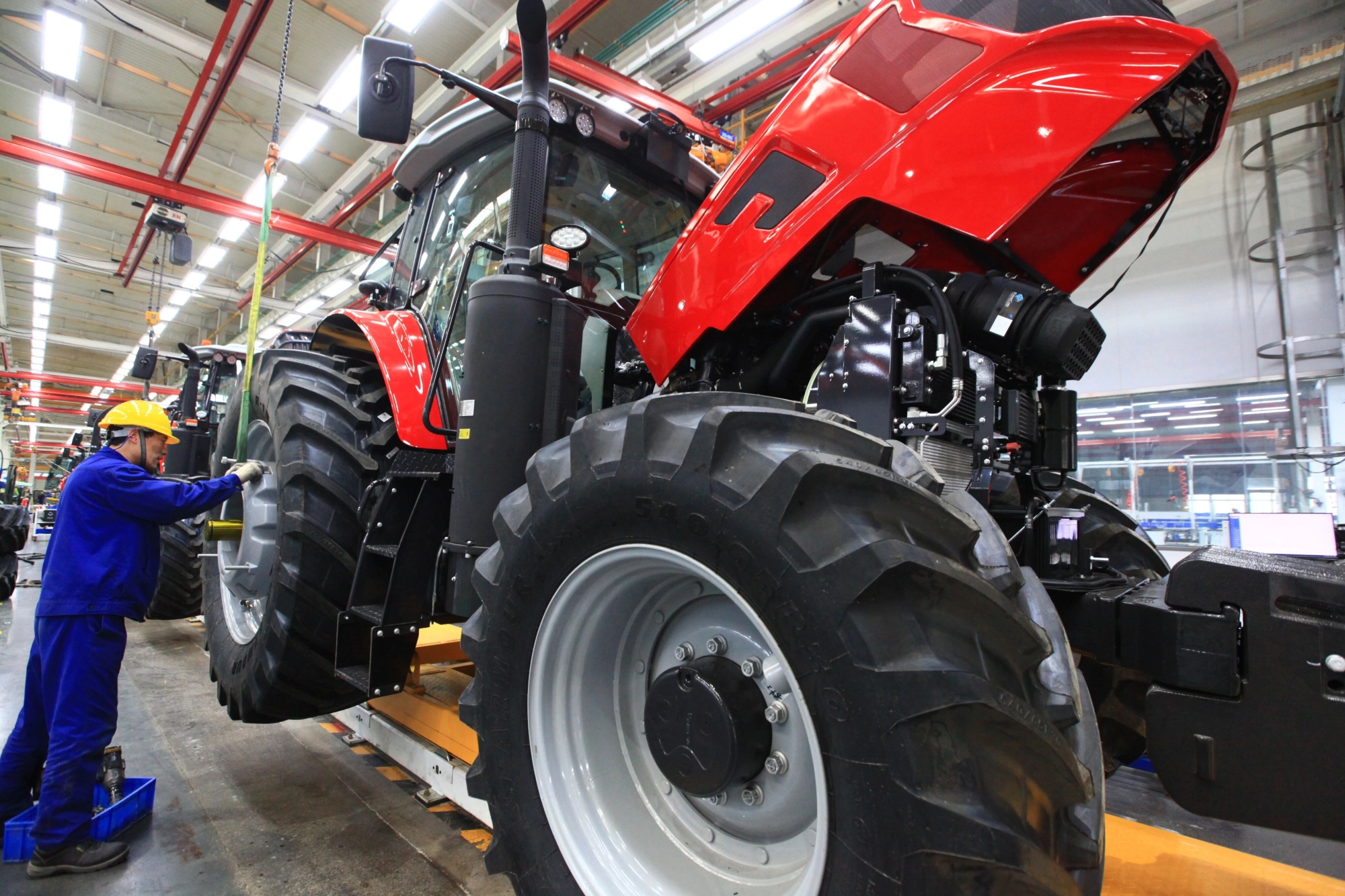 徐工農(nóng)業(yè)機械智能制造基地項目一期收獲機、拖拉機產(chǎn)線已順利投產(chǎn),二期正在進行規(guī)劃方案設計。宋樂偉、沈峻峰走進展廳,了解企業(yè)“十五五”發(fā)展規(guī)劃、核心零部件研發(fā)等情況,實地察看拖拉機總裝、變速箱裝配、底盤裝配、駕駛室裝配等生產(chǎn)線,勉勵企業(yè)依托徐工協(xié)同創(chuàng)新優(yōu)勢,聚焦核心技術突破,加大產(chǎn)品研發(fā)投入,做大做強農(nóng)業(yè)機械產(chǎn)業(yè)板塊,為推進農(nóng)業(yè)現(xiàn)代化貢獻徐工力量。