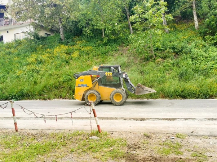 依山而建是這里鄉(xiāng)村道路最顯著的特點(diǎn),蜿蜒曲折、狹窄處僅能容納單臺車輛行駛,就市政施工來說相較市區(qū)道路工作量可不小,需要一機(jī)多能的工程機(jī)械縮小作業(yè)面占用和節(jié)省作業(yè)時間,這就給多才多藝的徐工滑移裝載機(jī)帶來了一展拳腳的舞臺。