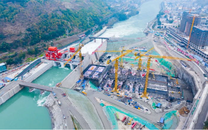 該水電站位于四川省樂(lè)山市金口河區(qū)境內(nèi),是四川省“十四五”重點(diǎn)建設(shè)項(xiàng)目,項(xiàng)目完成后,總裝機(jī)容量30萬(wàn)千瓦,預(yù)計(jì)年平均發(fā)電量15.03億千瓦時(shí),對(duì)促進(jìn)國(guó)家清潔能源基地建設(shè)、實(shí)現(xiàn)“雙碳”目標(biāo)意義重大。項(xiàng)目主要設(shè)有五孔泄洪閘、發(fā)電廠房、兩岸混凝土重力壩、魚(yú)道等水工建筑物,壩體最高54米。