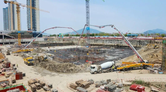 據(jù)了解,橫琴科學(xué)城(一期)是全國最大的EPC房建項(xiàng)目,涵蓋31棟建筑,用地面積約32.2萬平方米,總建筑面積高達(dá)116萬平方米。而此次施工更是需要一次性澆筑5000方C35標(biāo)號(hào)混凝土,這無疑是一場(chǎng)對(duì)設(shè)備性能與施工團(tuán)隊(duì)能力的嚴(yán)峻考驗(yàn)。