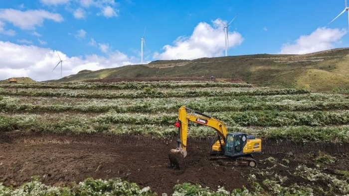 以“貴州屋脊”為“畫布”,徐工挖掘機(jī)在云端“繪”良田。