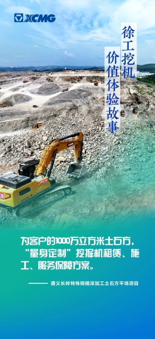 貴州遵義長(zhǎng)嶺特殊鋼精深加工技改項(xiàng)目為貴州省2023年重點(diǎn)項(xiàng)目,土石方平場(chǎng)量1000多萬方,在整個(gè)建設(shè)過程中,徐工挖機(jī)為客戶“量身定制”租賃、施工、服務(wù)保障方案。