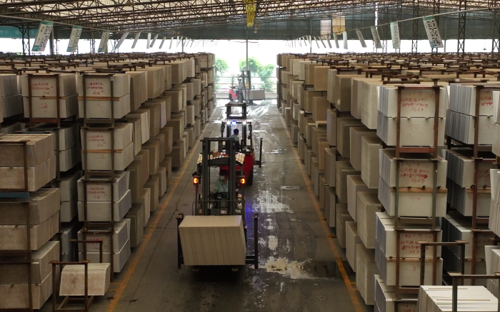 在華南區(qū)某大型陶瓷廠內(nèi),十幾臺徐工重載高壓鋰電叉車正在進行繁忙的搬運裝卸工作,為即將到來的市場旺季做好準備。