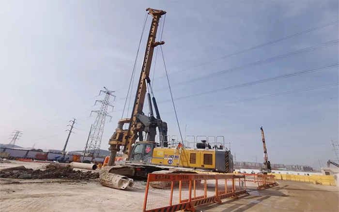徐州地層有灰?guī)r,硬度80Mpa以上。施工環(huán)境復(fù)雜,地質(zhì)條件多變,徐工旋挖鉆機(jī)首當(dāng)其沖,干勁十足!
