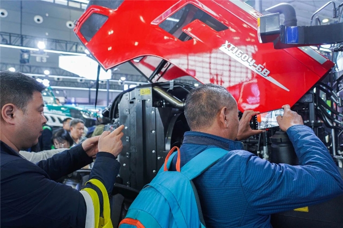 此次為徐工首次參加農(nóng)機(jī)展。展會現(xiàn)場,來自全國各地的用戶、經(jīng)銷商、農(nóng)機(jī)愛好者匯聚一堂,共話農(nóng)機(jī)行業(yè)新技術(shù)、新趨勢、新機(jī)遇。徐工展區(qū)內(nèi),人頭攢動,凝聚徐工農(nóng)機(jī)人智慧與匠心的五款明星產(chǎn)品閃耀登場,吸引了眾多客戶及合作伙伴熱情咨詢、現(xiàn)場商談,全方位展示了“高技術(shù)、高質(zhì)量、高性價(jià)比”大型化、成套化產(chǎn)品的風(fēng)采。