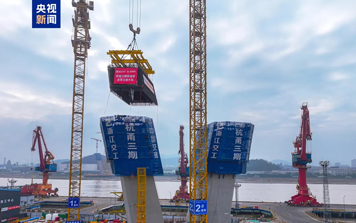 近日,在甬江特大橋施工現(xiàn)場,徐工超大塔XGT3000-120S揮舞鐵臂,67噸的鋼筋部品被穩(wěn)穩(wěn)吊起,精準安裝,徐工助力這一世界級跨江大橋建設(shè)提速加碼。