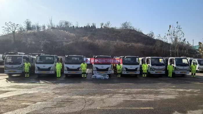 12月6日,在山東濟南交車現(xiàn)場,車輛整齊排列,徐工向當?shù)亟桓读藘煞N不同車型的后裝壓縮式垃圾車,這些車輛將協(xié)同作業(yè),肩負起濟南市生活垃圾的收集和轉運工作。