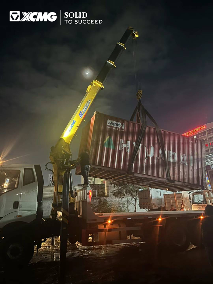 徐工隨車起重機采用了先進的液壓系統(tǒng)與操控技術,具備了高效、穩(wěn)定的工作性能。在集裝箱吊裝轉運過程中,起重機憑借強大的起重能力與卓越的穩(wěn)定性,能夠在狹小或復雜的空間內進行精確吊裝。