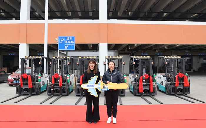 徐工鯤鵬系列電動(dòng)平衡重叉車批量交付某大型航空樞紐,