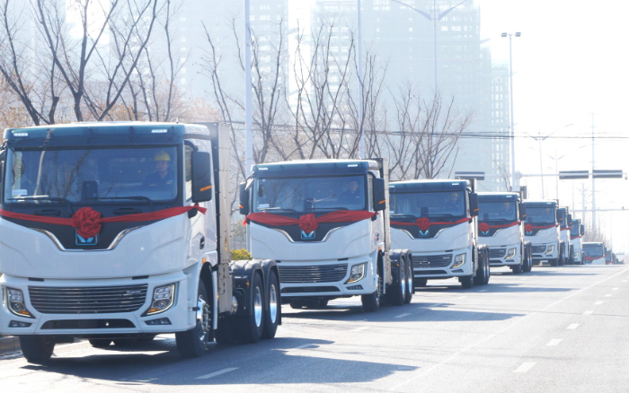 “我宣布,徐工新能源牽引車百臺交付暨千臺簽約儀式圓滿禮成,發(fā)車!”徐工集團(tuán)副總經(jīng)理,徐工汽車總經(jīng)理、黨委書記夏泳泳一聲令下,百臺徐工新能源牽引車隊(duì)列整齊、邁步向前,為更多區(qū)域“雙碳”目標(biāo)實(shí)現(xiàn)作出更大貢獻(xiàn)。