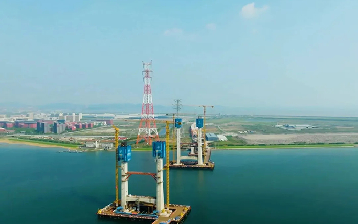 該項(xiàng)目建設(shè)規(guī)模大,結(jié)構(gòu)類型多,科技含量高。全線海域橋梁長度約9公里,海上作業(yè)工程量大,項(xiàng)目施工區(qū)域內(nèi)氣象、水文、地質(zhì)條件復(fù)雜,同時(shí)還面臨航運(yùn)繁忙,海上施工組織難度大等挑戰(zhàn)。