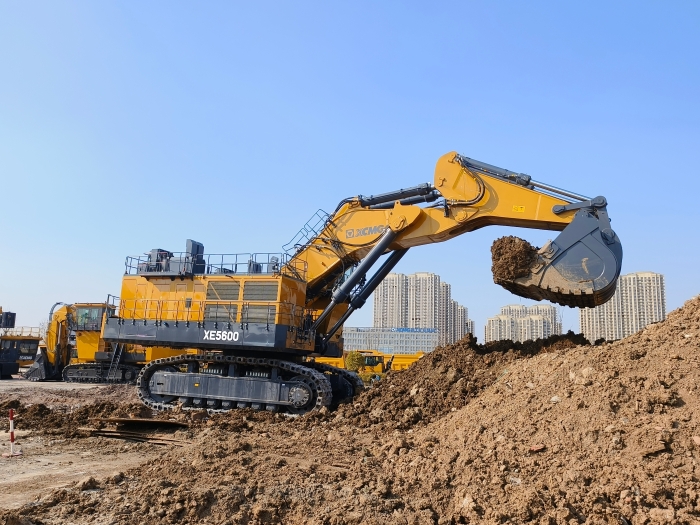 此次交付的XE5600礦用挖掘機是徐工自主研發(fā)、填補400至700噸級產(chǎn)品型譜空白的高端之作,配備兩臺1520馬力發(fā)動機驅(qū)動,動力十分強悍,可搭配徐工230-300噸級礦車成套使用施工。