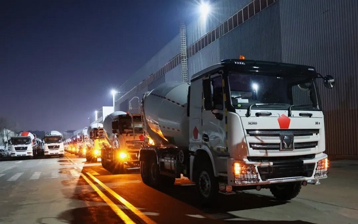 百余臺定制版52/58/62米泵車、12方攪拌車,列隊鳴笛,從徐州基地發(fā)往中東。產(chǎn)品采用耐高溫液壓系統(tǒng)與節(jié)油技術(shù),適配中東極端環(huán)境,助建NEOM未來新城等超級工程。