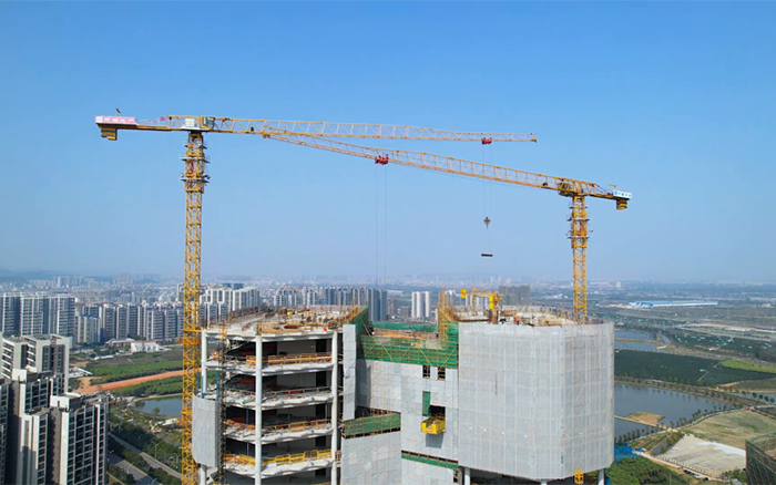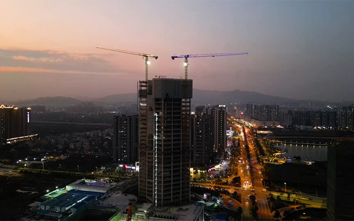 與高樓肩并肩,讓夢(mèng)想都實(shí)現(xiàn)。3臺(tái)XGT6515E-10S塔機(jī)在施工現(xiàn)場(chǎng)運(yùn)轉(zhuǎn)自如,相互配合,合力保障項(xiàng)目施工建設(shè)。