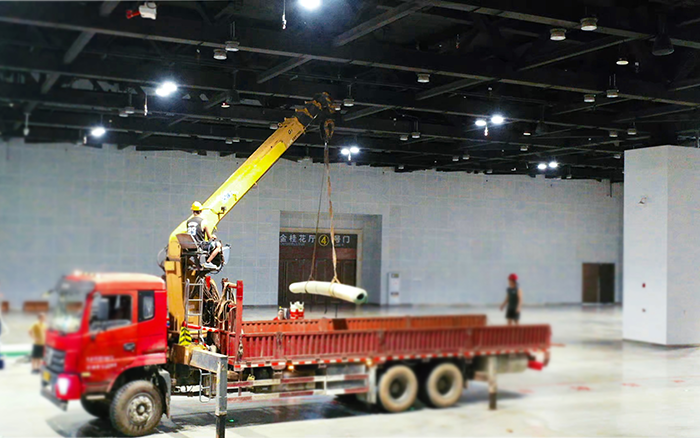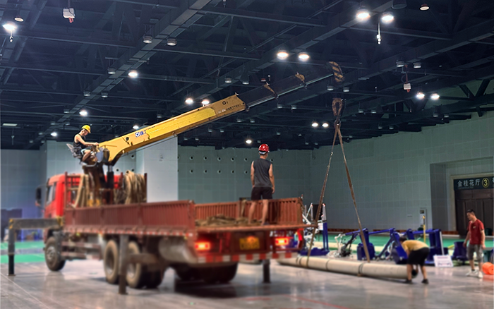 在廣西國(guó)際會(huì)展中心體育場(chǎng)館塑膠鋪設(shè)施工現(xiàn)場(chǎng),徐工隨車起重機(jī)以硬核實(shí)力成為工程推進(jìn)的 “主力軍”,贏得客戶連連稱贊。