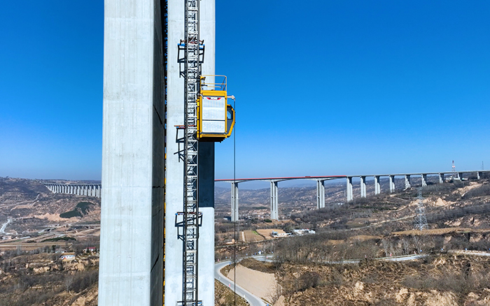 除了群塔助力,馬蓮河特大橋項目還使用了6臺徐工SC200/200FS1施工升降機,卓越的性能有效保障鋼筋、水泥等建筑材料運輸安全,助力項目高效施工。