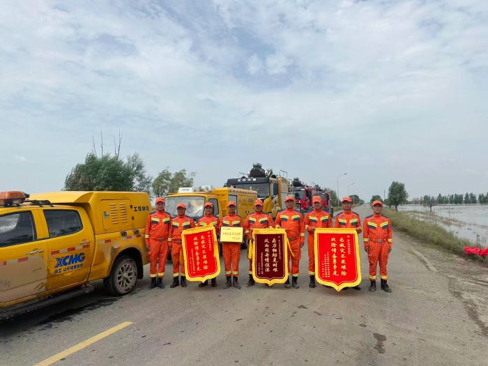 “為救災(zāi)不畏艱險(xiǎn),戰(zhàn)險(xiǎn)情奮勇?tīng)?zhēng)先”——錦旗上的話語(yǔ),不僅是災(zāi)區(qū)政府與人民的真摯感謝,更是對(duì)徐工應(yīng)急救援隊(duì)責(zé)任與擔(dān)當(dāng)?shù)纳鷦?dòng)注腳。