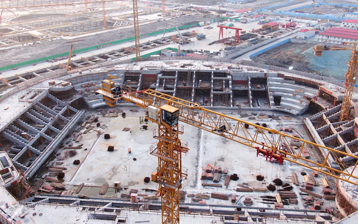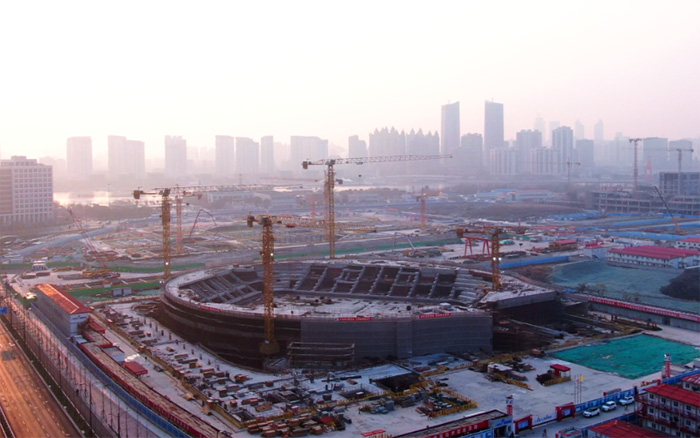 該項(xiàng)目造型獨(dú)特,主賽場區(qū)域結(jié)構(gòu)復(fù)雜,同時(shí)采用大量的曲線設(shè)計(jì),給現(xiàn)場鋼筋、水泥預(yù)制件的制作與安裝帶來了巨大挑戰(zhàn),也對塔機(jī)的綜合性能提出極高要求。