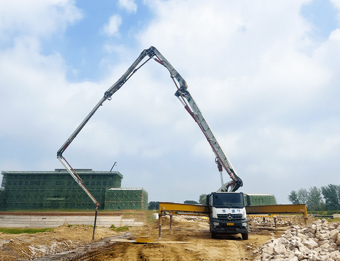 其超長臂架可全面覆蓋施工區(qū)域澆筑范圍,搭載的智能控制系統(tǒng)實現混凝土精準輸送,顯著提升施工效率。