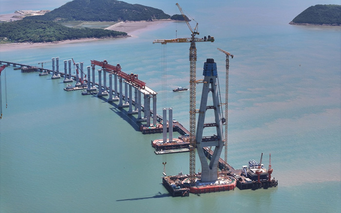 在青龍門大橋建設中,主塔毫米級精準控制與海上超高結構吊裝成為關鍵難題。