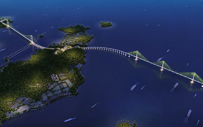 東海之濱,長虹臥波。大橋建成后,將直接改善舟山南翼群島的對外交通條件,對優(yōu)化舟山群島新區(qū)空間布局、打造現(xiàn)代海洋產(chǎn)業(yè)基地具有關鍵作用。