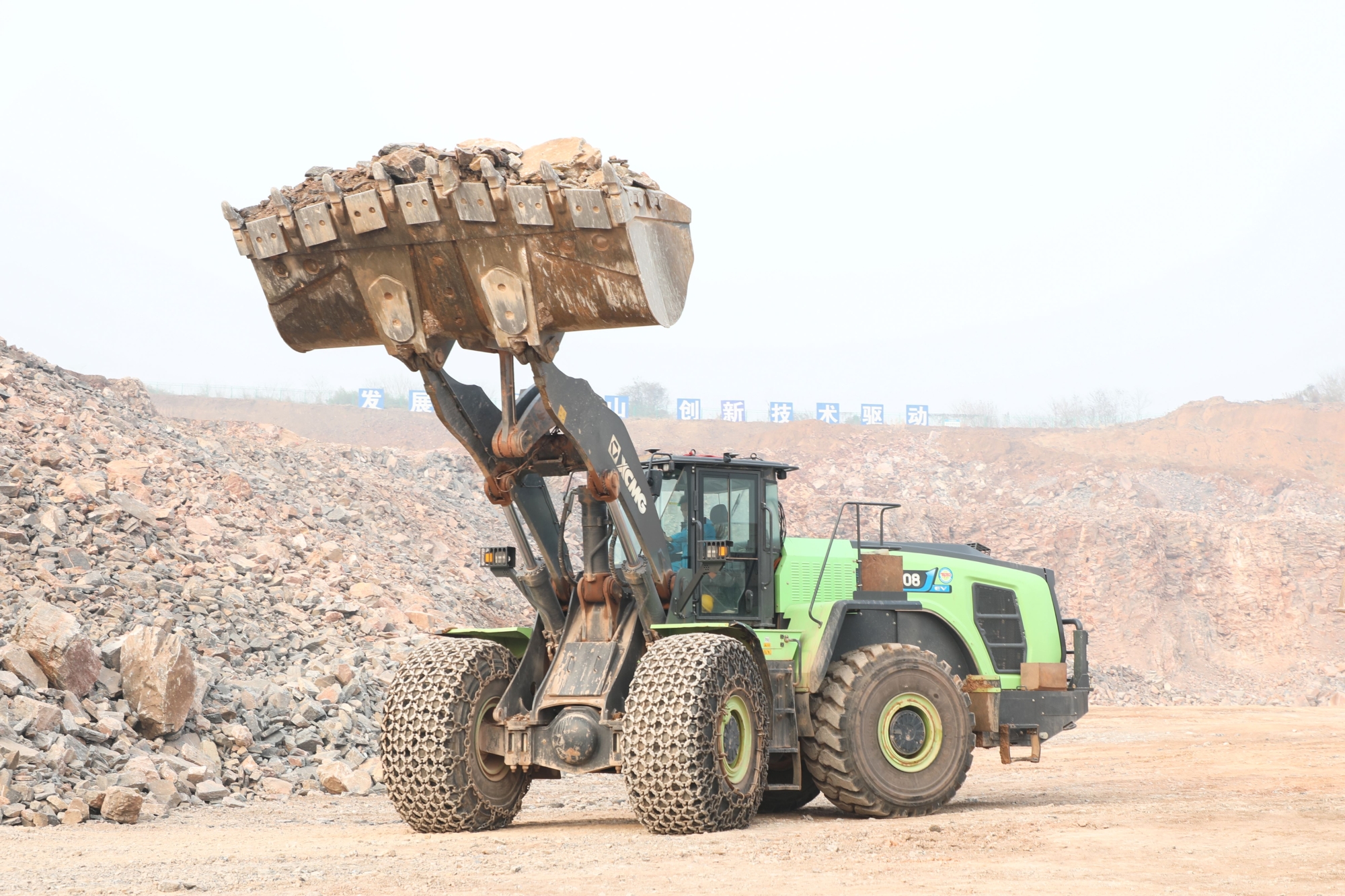 某水泥廠石灰石礦山轉(zhuǎn)運作業(yè)現(xiàn)場,徐工XC9108-EV揮舞巨臂鏟裝石料,以超出預期的綜合性能優(yōu)勢獲得青睞。