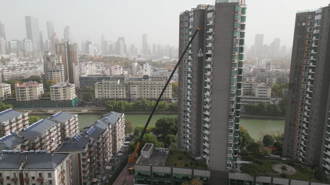 2.8米的車寬讓它剛好能通過這條道路,15米的車長在有限空間里移動也很方便。78米的主臂加上自帶30噸配重,讓它不用加裝副臂就能完成這次作業(yè)——這在空間緊張的小區(qū)里,是個實實在在的亮點。